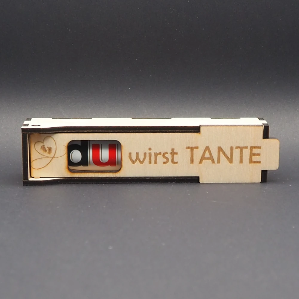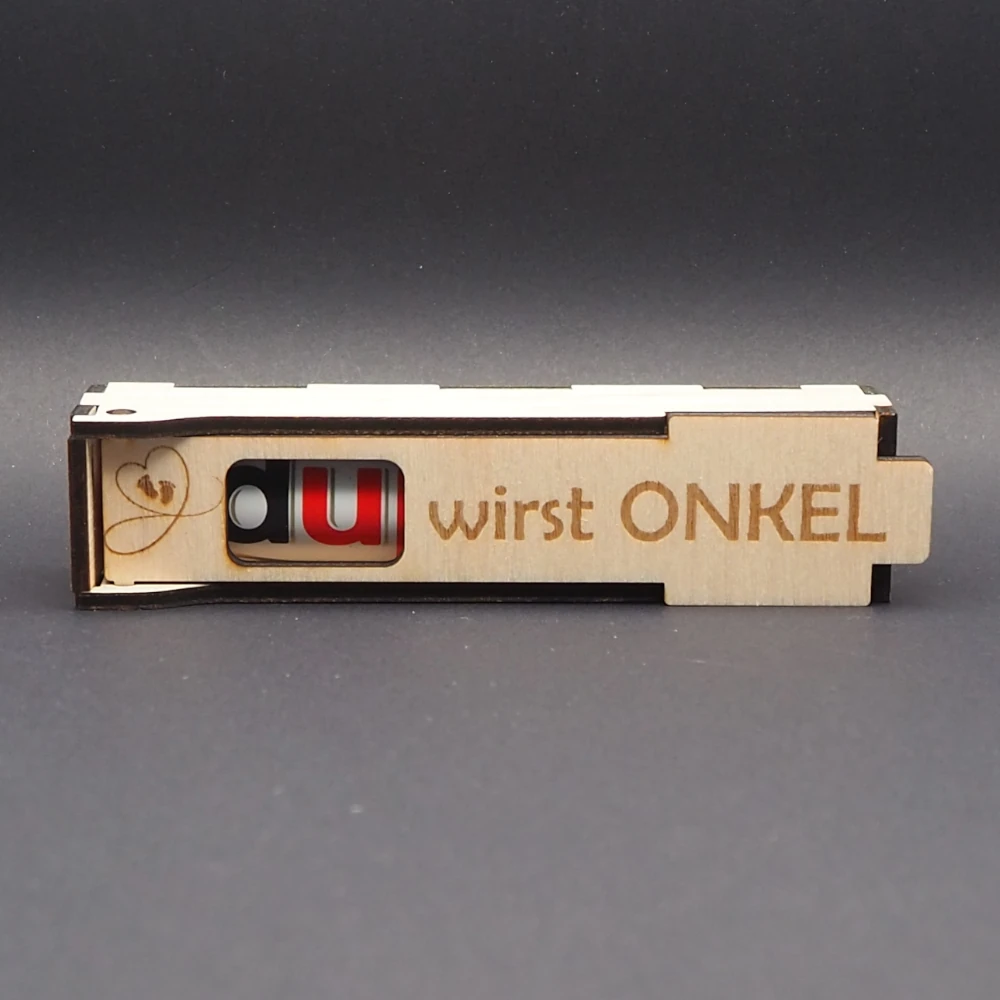 Unsere einzigartige Duplo-Holzbox bietet eine kreative Möglichkeit, die Ankunft eines Babys zu verkünden. Mit einem süßen Duplo im Inneren und einer originellen Botschaft wie „Zuwachs im Anmarsch“ oder „Bald zu dritt“ ist diese Box eine charmante Alternative zur herkömmlichen Babyankündigung. Die liebevoll gestaltete Holzbox verleiht der Botschaft eine besondere Note und macht sie zu einem unvergesslichen Moment für die ganze Familie. Ideal als Geschenk für werdende Eltern oder als persönliche Ankündigung für Freunde und Verwandte.