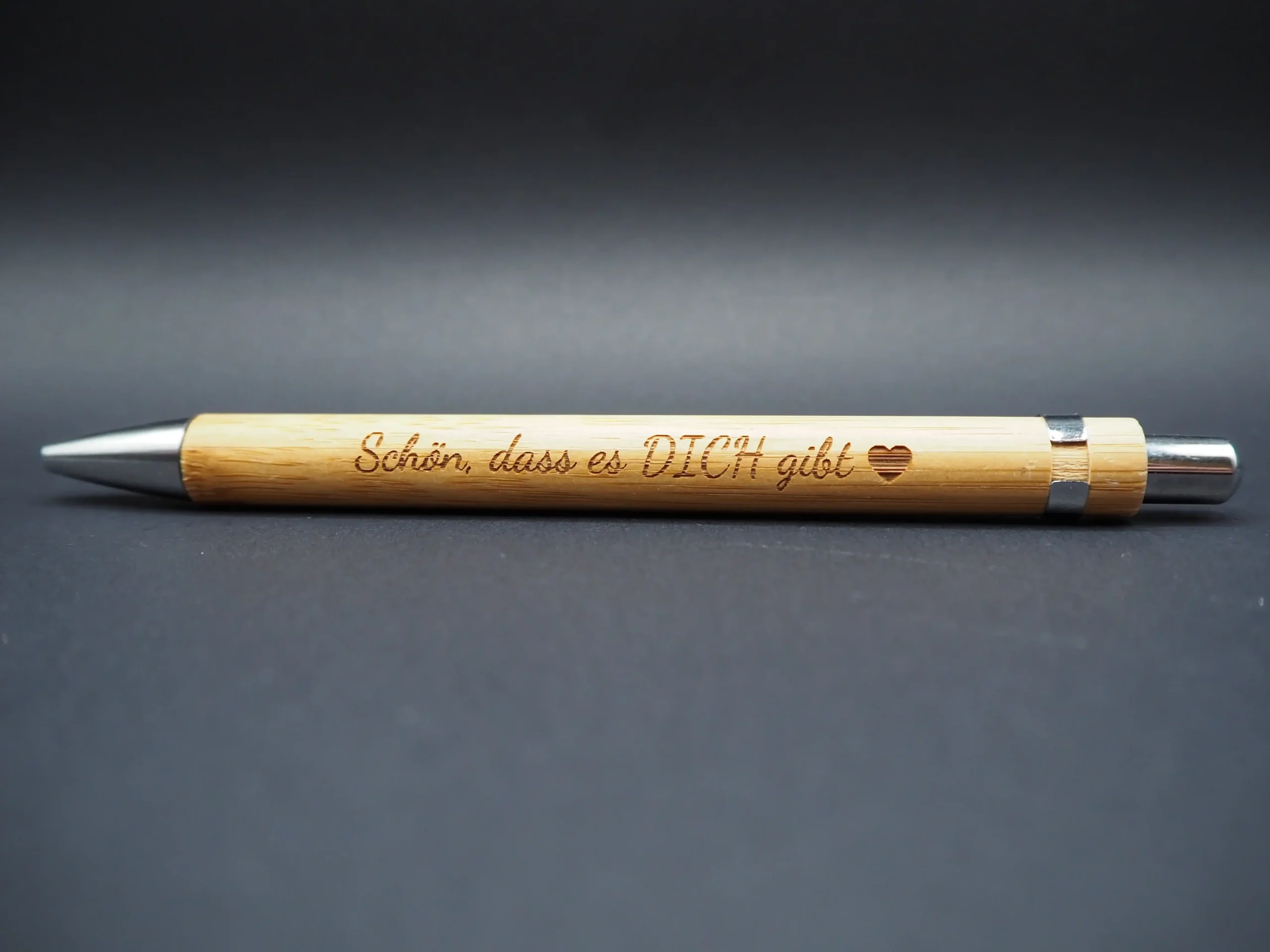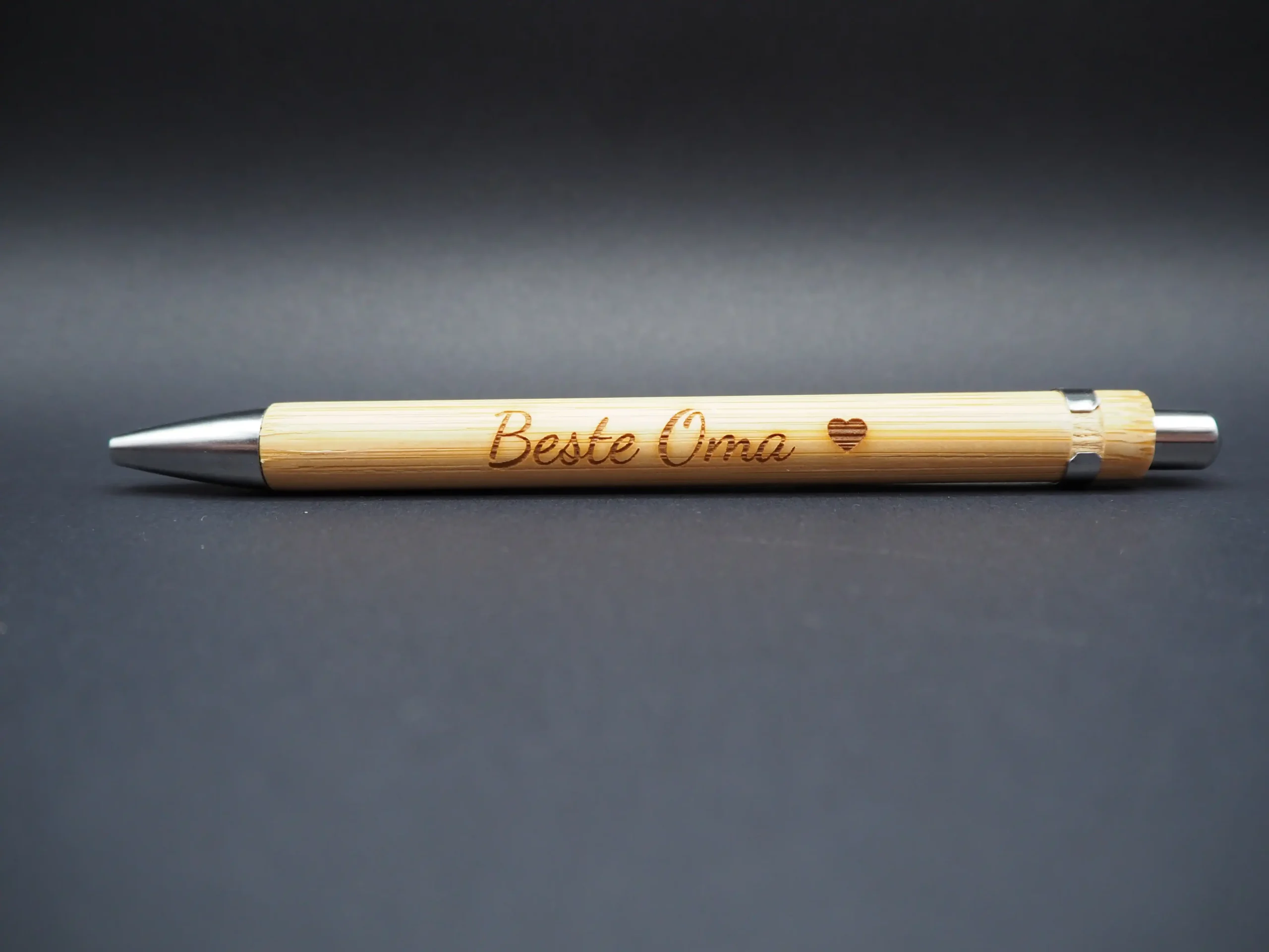 Unser Bambus Kugelschreiber vereint umweltfreundliche Materialien mit persönlichem Flair durch die Lasergravur. Dieses elegante Schreibgerät bietet nicht nur eine nachhaltige Option, sondern auch eine individuelle Note durch eine präzise Gravur. Der warme, natürliche Bambus schafft ein angenehmes Schreibgefühl. Ideal für Geschäftsgeschenke oder als persönliches Accessoire. Natürlich auf Bestellung auch individuell gestaltbar z.B. mit Namen.