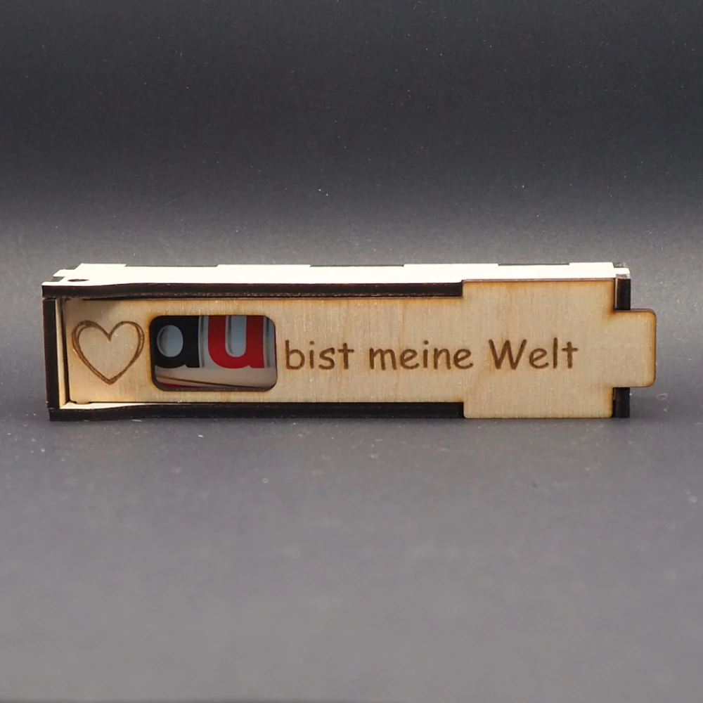 Unsere kleine Holzbox ist das perfekte Geschenk für den Valentinstag. Gefüllt mit einem süßen Duplo und der liebevollen Botschaft wie z.B. „Du bist wundervoll“, ist diese Box nicht nur eine süße Überraschung, sondern auch eine herzliche Geste für die Liebsten. Die hochwertige Holzverarbeitung und die sorgfältige Präsentation machen diese Geschenkbox zu einem romantischen und persönlichen Geschenk, das die Liebe zum Ausdruck bringt. Ideal, um das Herz der Beschenkten zu berühren und einen besonderen Moment zu schaffen.